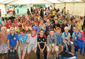 In sechs altersgleichen kleinen Gruppen tauchten die Kinder in ihnen unbekannte Welten ab, durchforsteten aber auch gleichzeitig ihr eigenes Leben nach Sternstunden. Ergänzend dazu gab es jeden Tag sogenannte Großgruppenaktionen, in der alle Kinder und Helfer zusammen verrückte Aufgaben lösten. So wurde gemeinsam, Alien fangen, Eiswürfel auftauen, Fliegen abklatschen, oder Großball-Rugby gespielt. Am Ausflugstag landeten alle auf einem Himbeerplaneten.